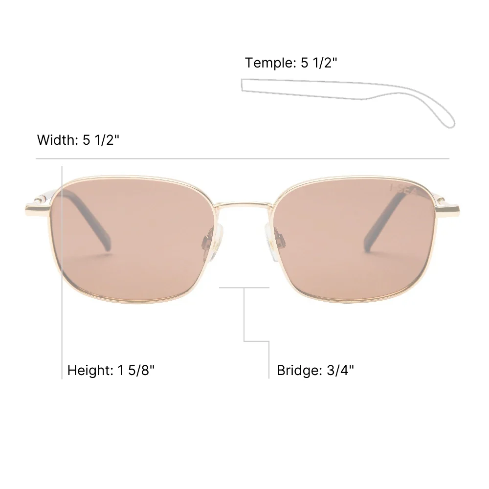 Chic, square sunglasses designed with a minimalist metal frame and polarize lenses.