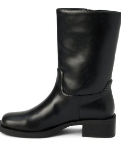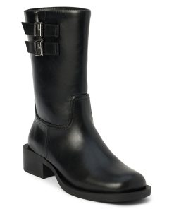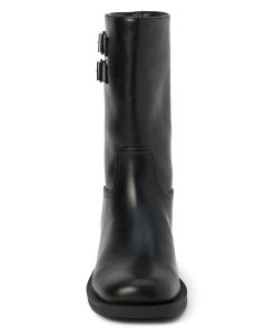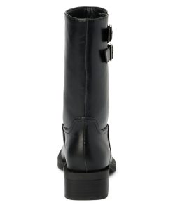 Squared toe moto boot with buckle detail.