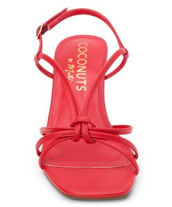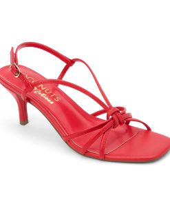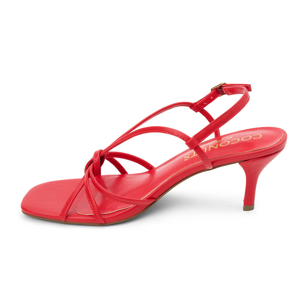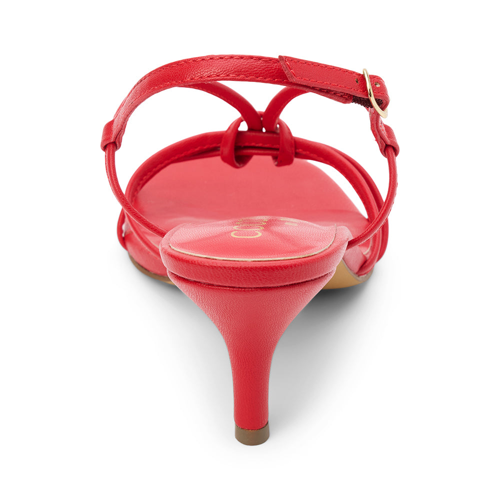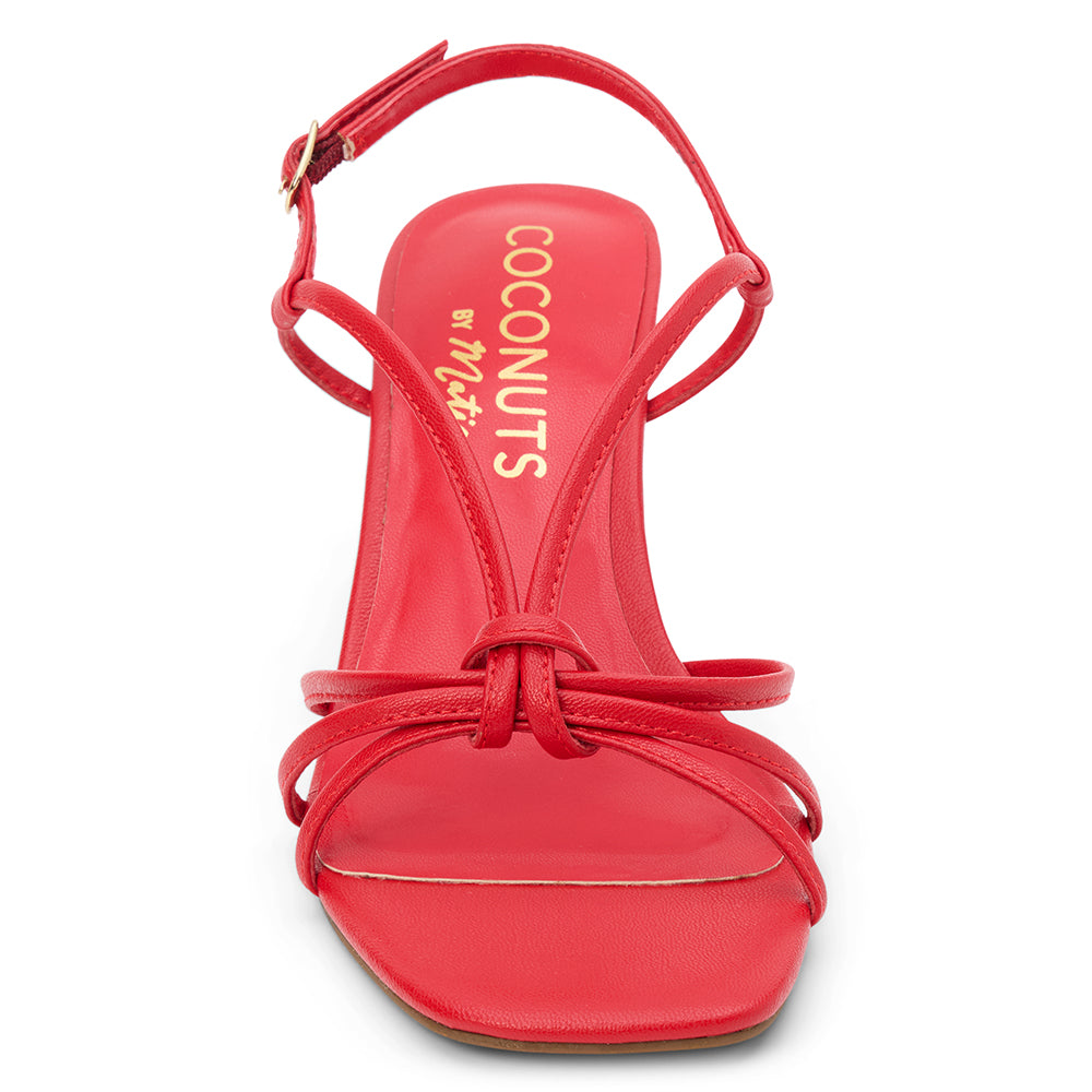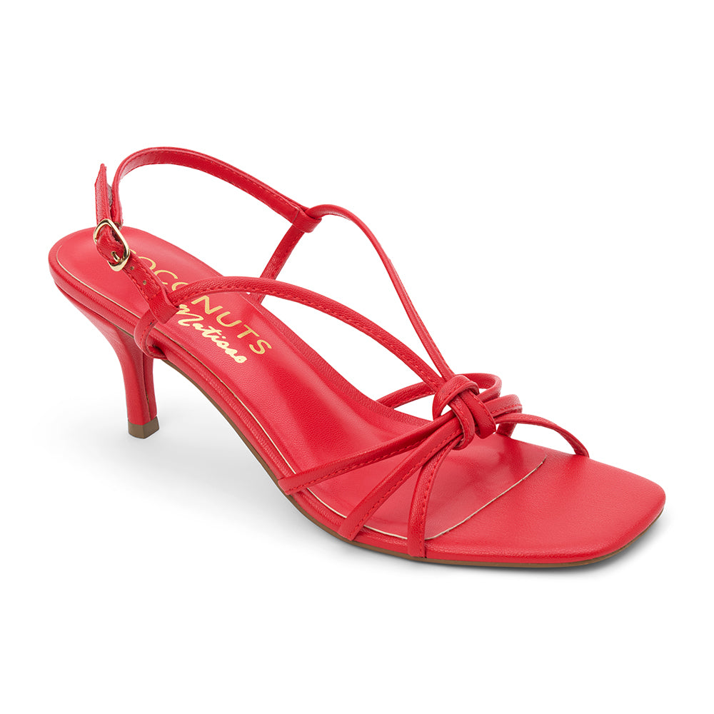 Vegan, strappy heeled sandal.