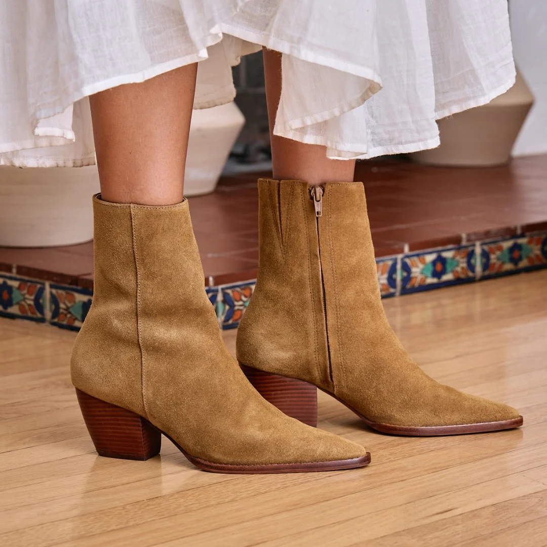 A legacy style, western-inspired modern ankle boot with a pointed toe.