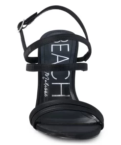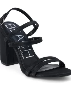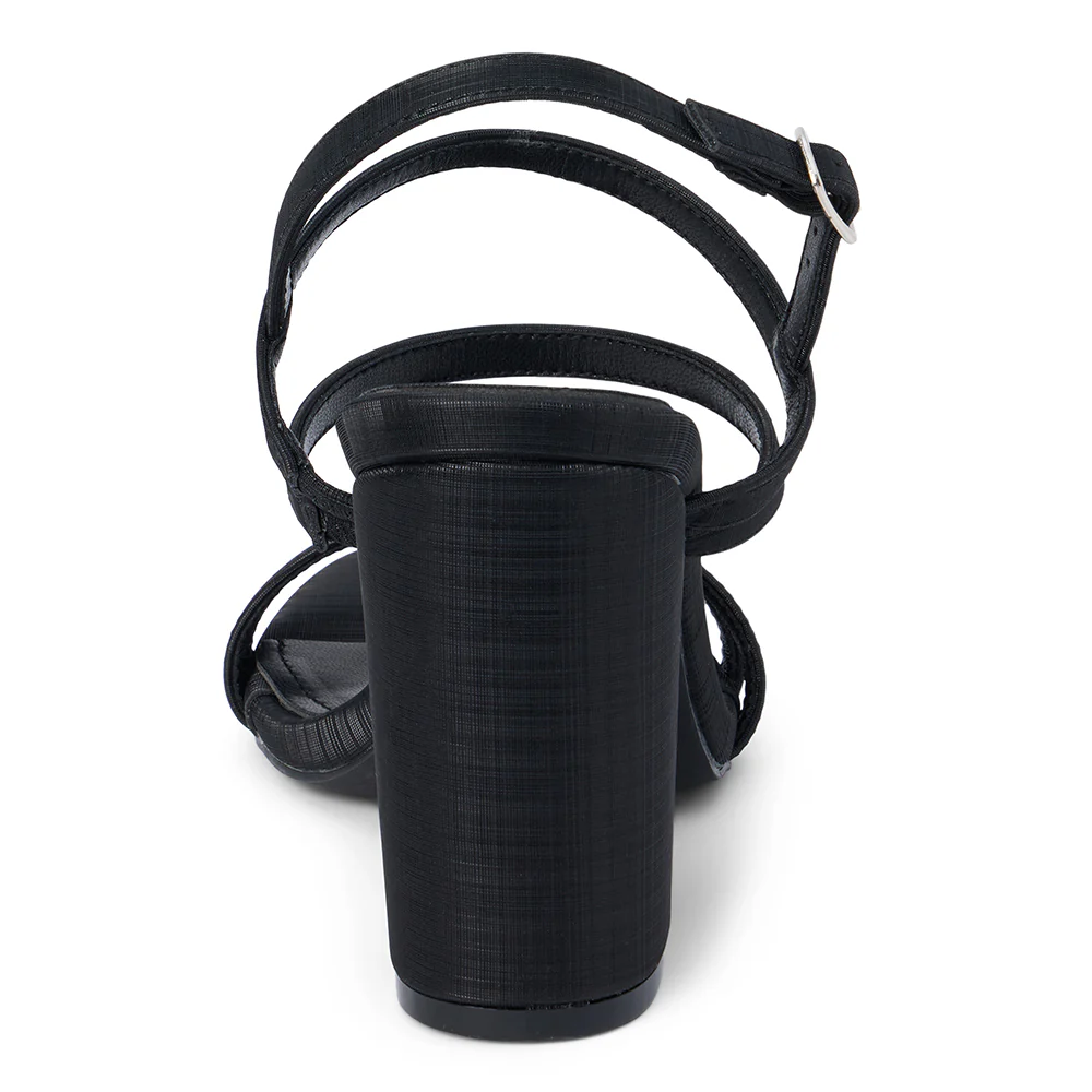 Vegan strappy sandal amplified with a rounded heel.