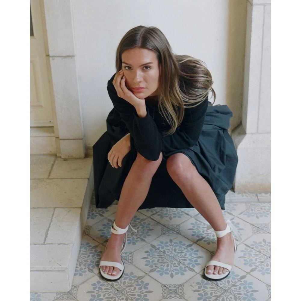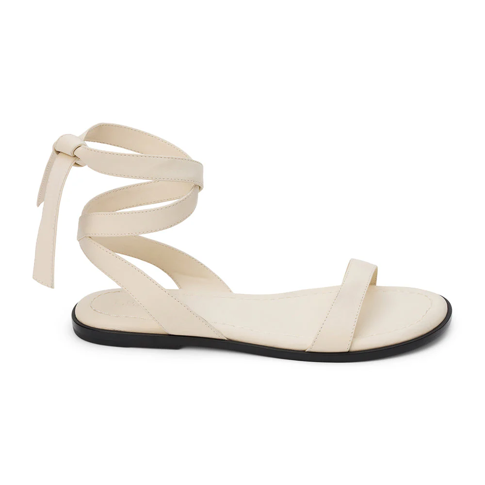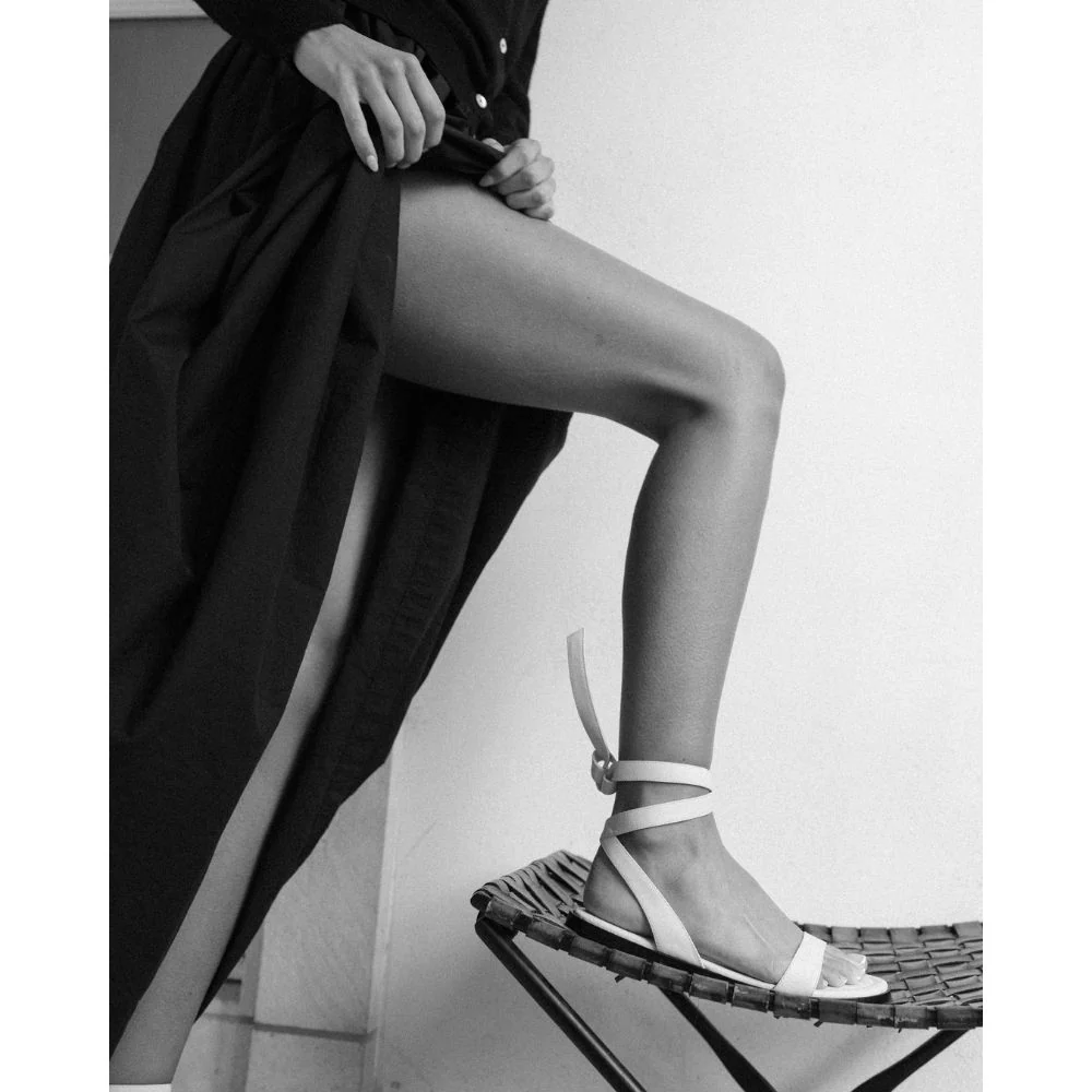 A flat sandal with an ankle wrap tie. Named after my sister, Mia Danielle Katz.