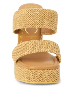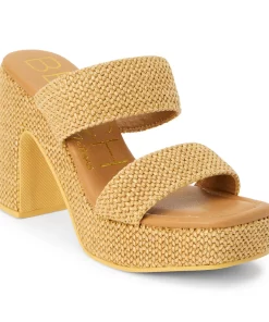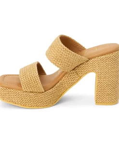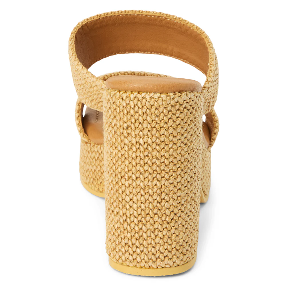 Vegan, two-band platform heel with squared off toe.