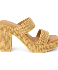 Vegan, two-band platform heel with squared off toe.