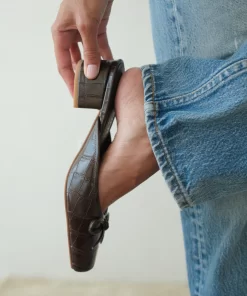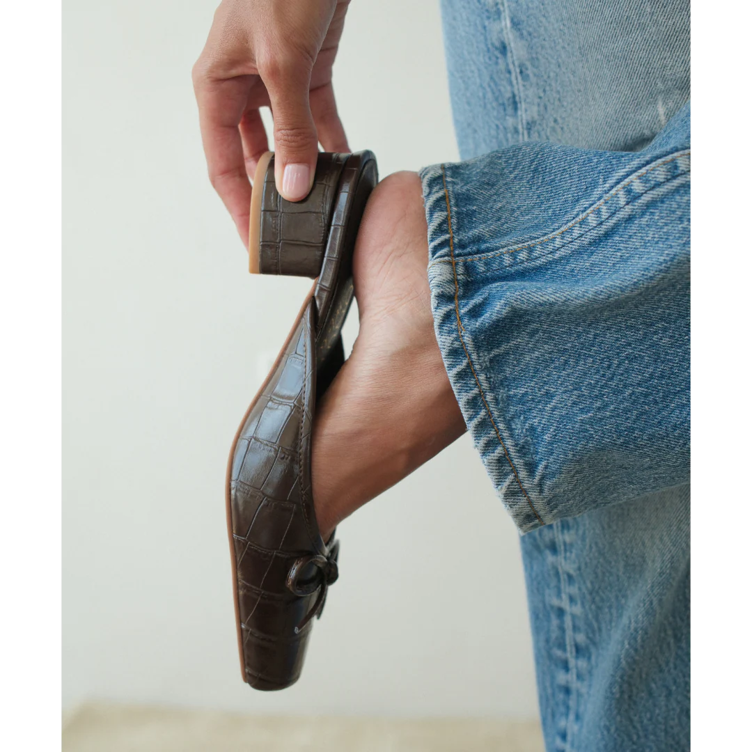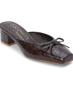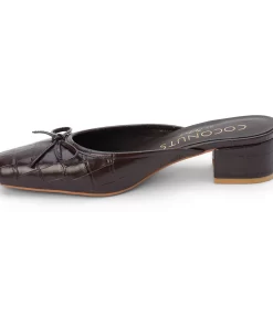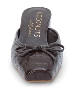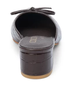 Embossed faux-leather mule with a square toe, low block heel and delicate bow detail.