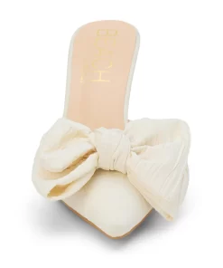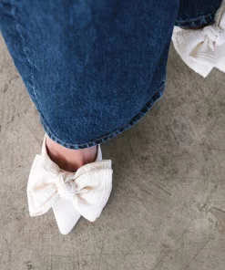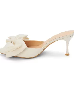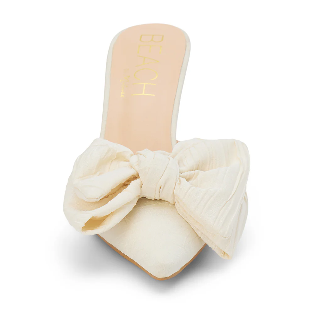 Vegan pointed-toe mule with sculpted heel and oversized knotted bow.