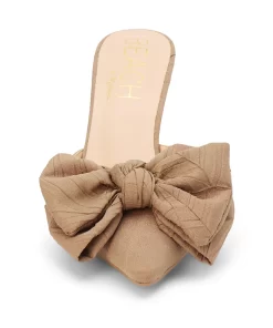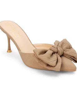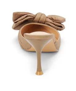 Vegan pointed-toe mule with sculpted heel and oversized knotted bow.
