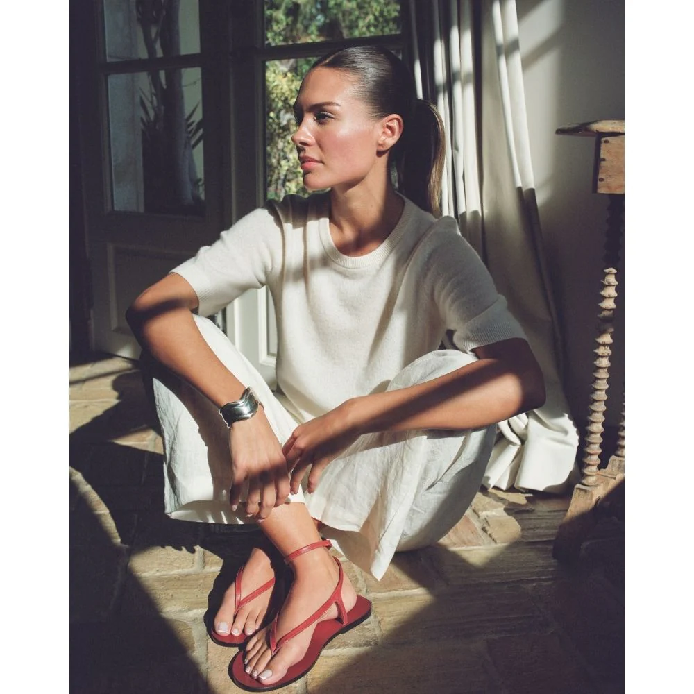 An elegant thong sandal with an ankle wrap and buckle. Named after myself, Natasha Lee Katz.