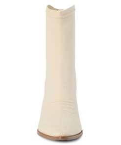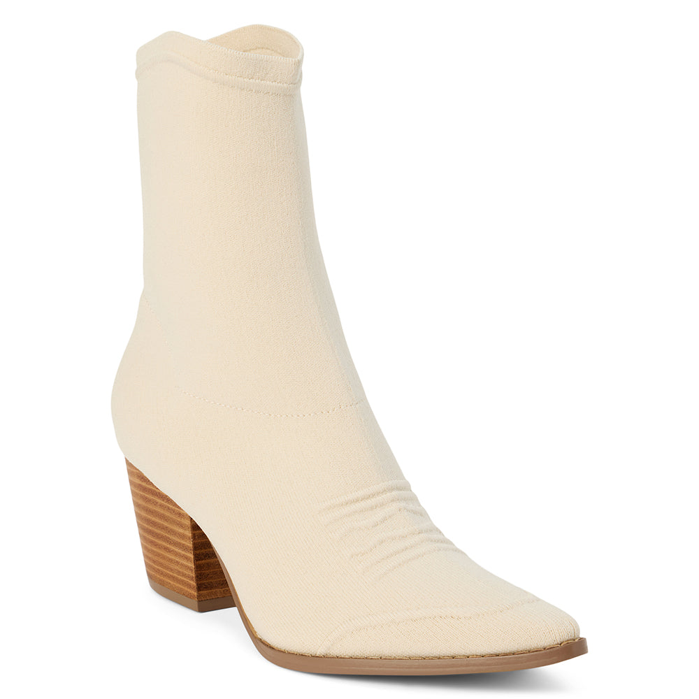 Western-inspired stretch knit ankle boot.