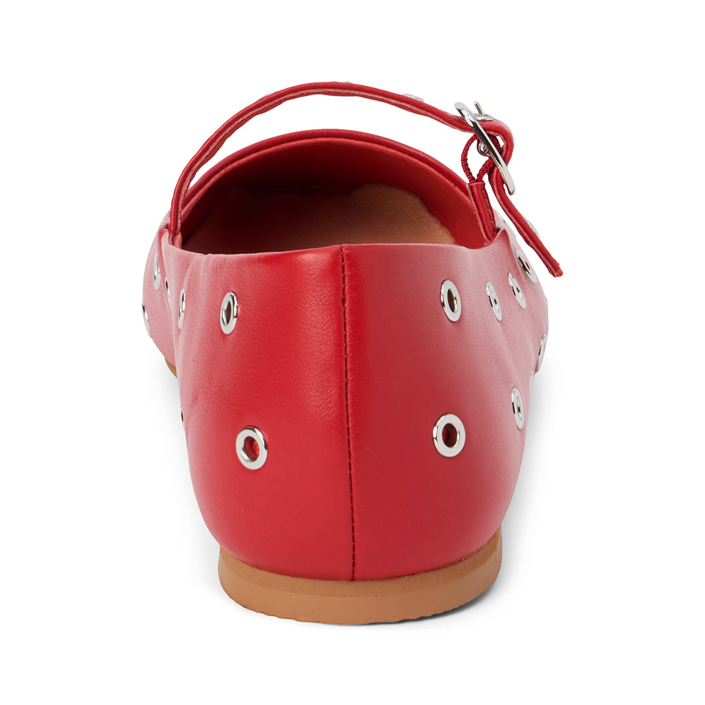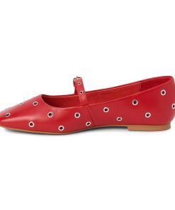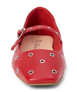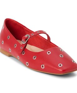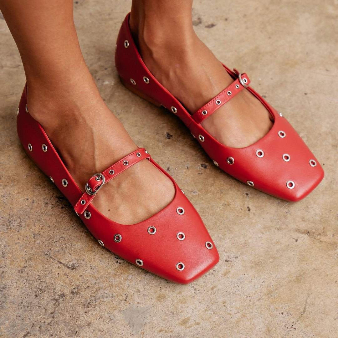 Square toe Mary-Jane ballet flat with gromet detailing.
