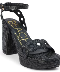 Vegan, platform heeled sandal with scallop and cut-out detail.