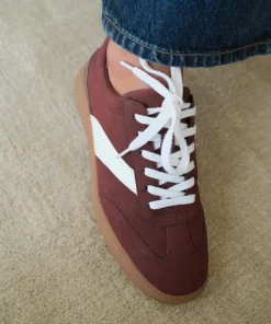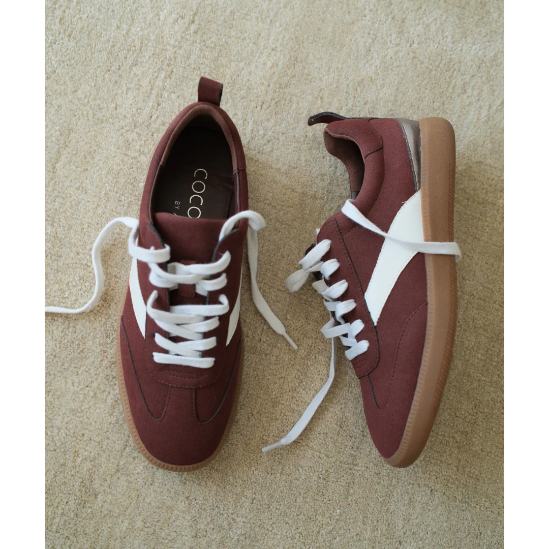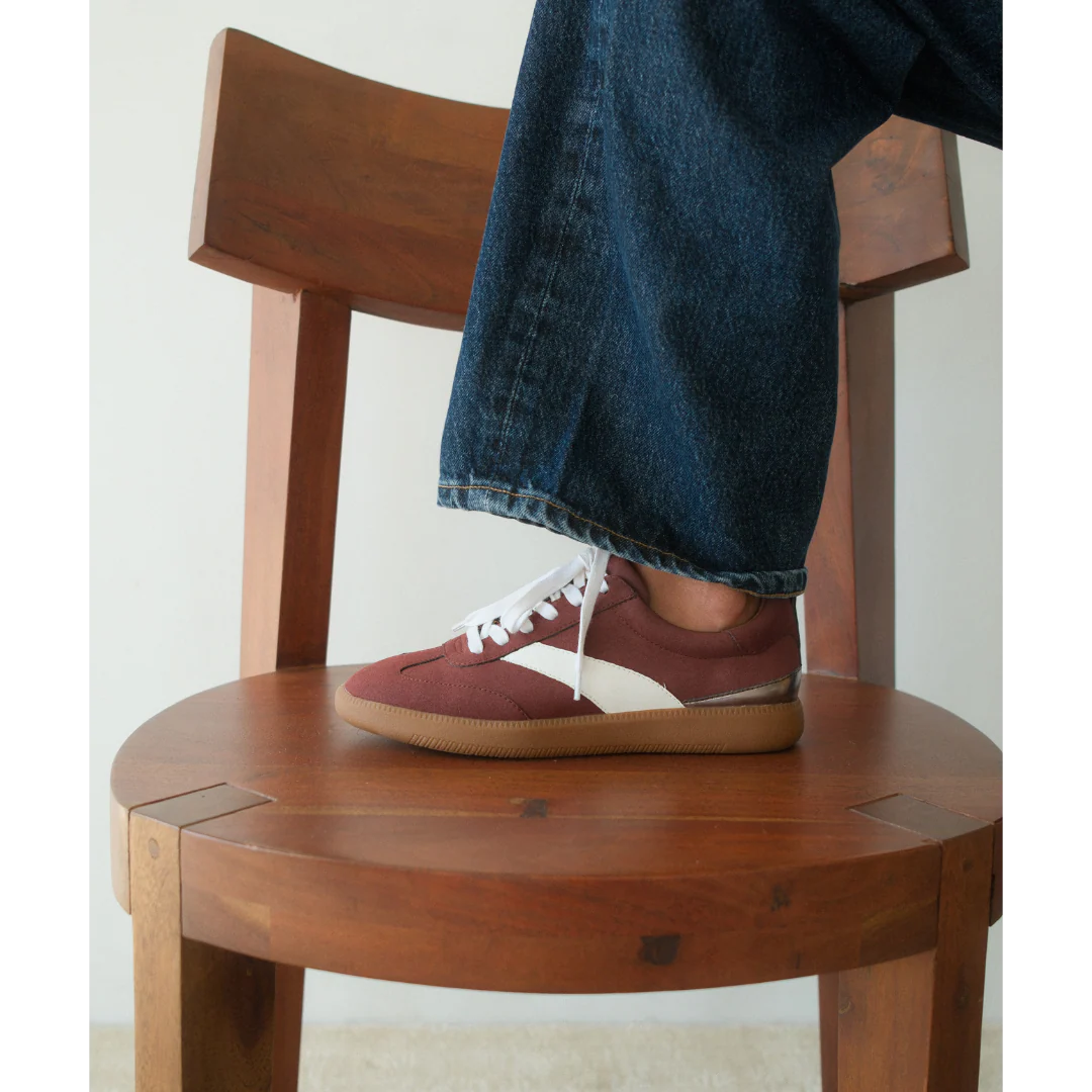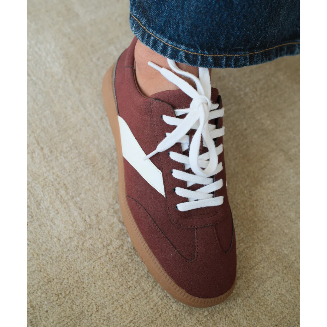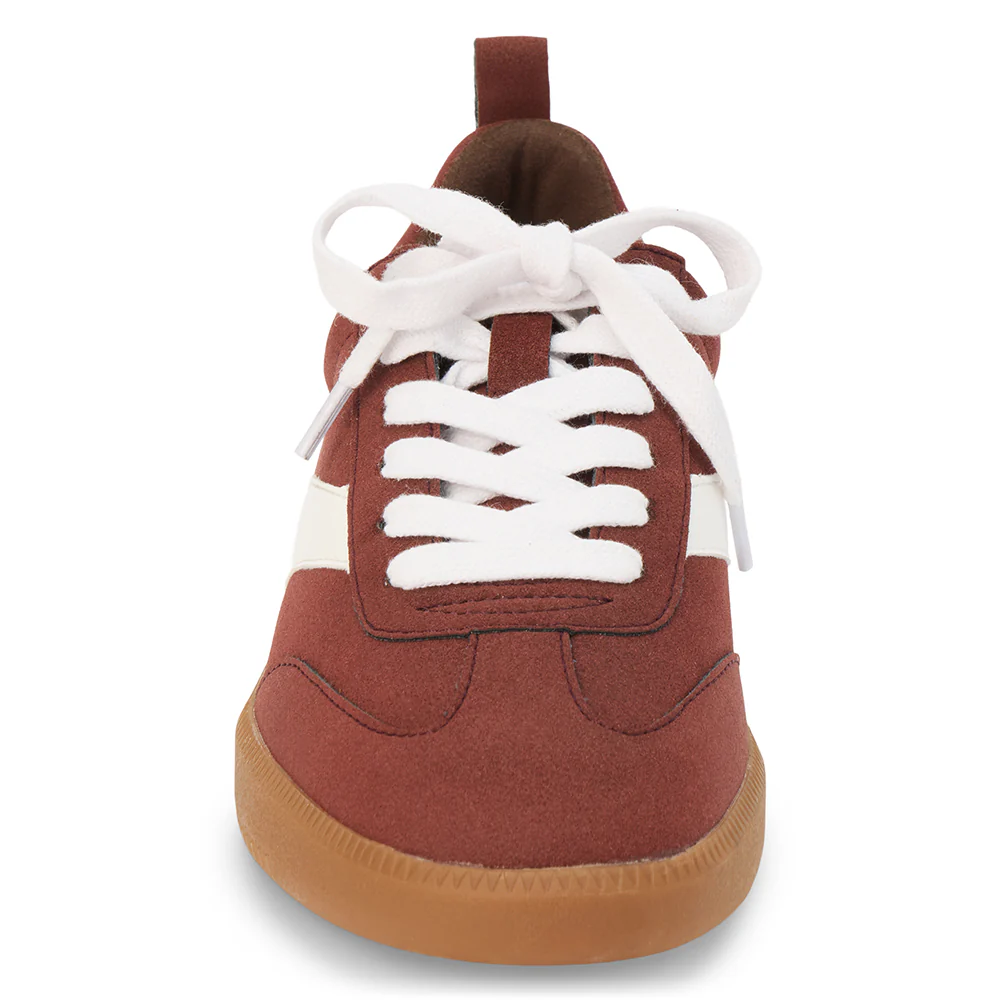 Vegan faux-suede sneaker with retro detailing and a gum sole.